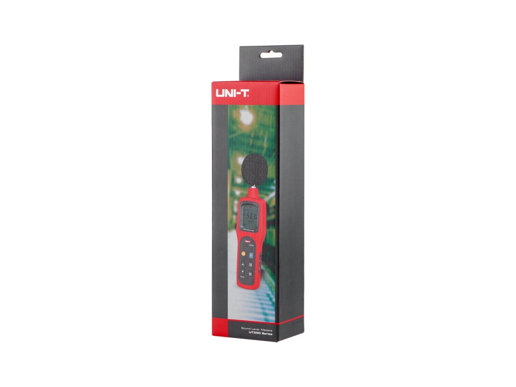 Měřič UT352 je vybaven kapacitním mikrofonem 1/2”, což zajišťuje vysokou přesnost měření. Zařízení má výstupy AC (cca 0,707 V při impedanci 600 ?) a DC (cca 10 mV/dB při impedanci 100 ?), což umožňuje připojení k externím systémům pro záznam nebo analýzu dat. Napájen čtyřmi bateriemi 1,5 V (LR6), UT352 je přenosný a pohodlný k použití, a indikátor nízké úrovně baterie a funkce automatického vypnutí zvyšují jeho efektivitu.