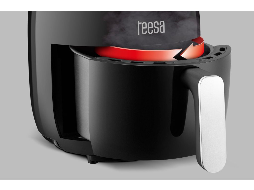 Přemýšlíte, jak funguje horkovzdušná fritéza? Tajemství fungování Digital Air Fryer Teesa spočívá ve využití horkého vzduchu, což umožní snížit používání oleje na absolutní minimum. Díky vhodné cirkulaci vzduchu se zařízení rychle zahřívá a teplo je rozváděno rovnoměrně.