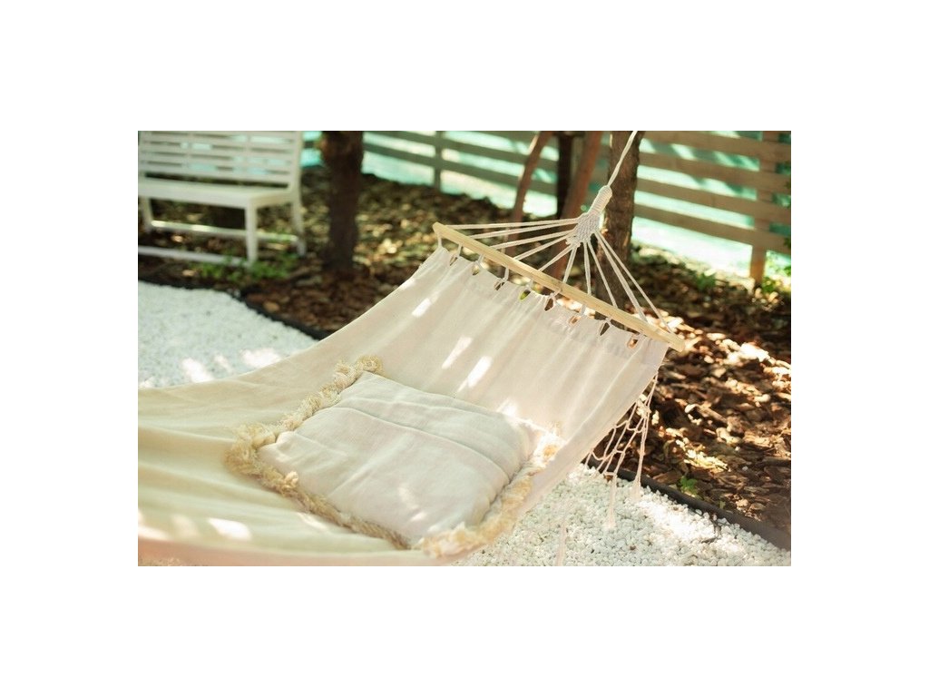 Houpací síť s třásněmi BOHO 200 x 100 cm béžová *3286