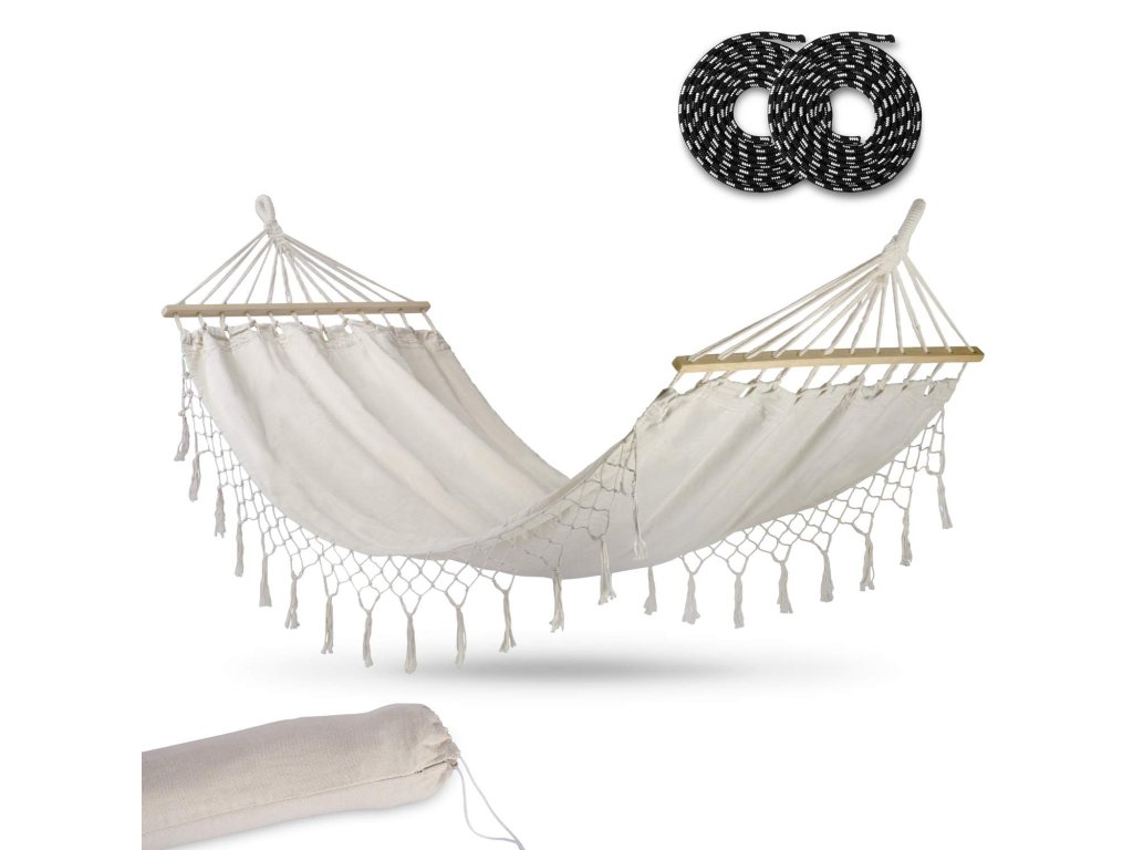 - Součástí balení jsou 2 lana, na které můžete houpací síť zavěsit v zahradě