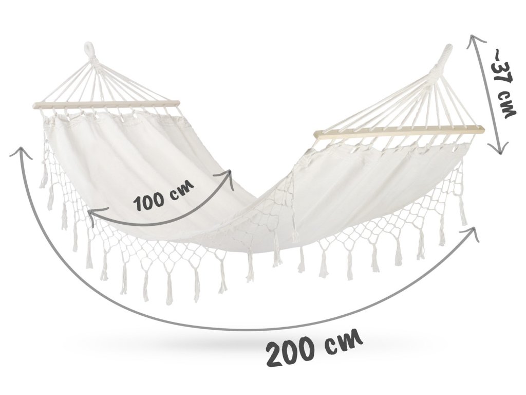 - rozměry houpací sítě 200 x 100 vám umožní nádherný odpočinek během letního odpoledne,