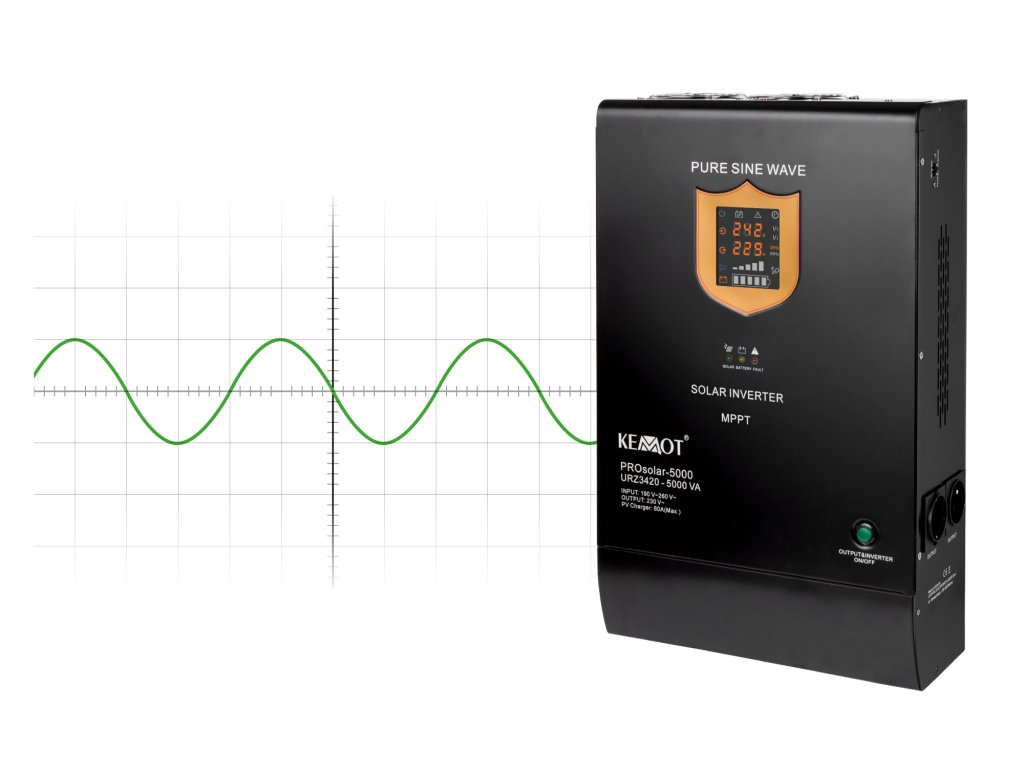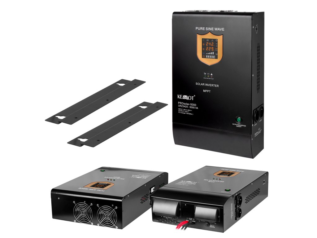 Solární měniče ze série KEMOT PROsolar s nominálním výstupním výkonem od 500 W do 2500 W díky své rozšířené funkčnosti umožňují spolupracovat s fotovoltaickými moduly a elektrickou sítí. Zařízení kombinují funkce solární nabíječky, invertoru a nabíječky pro baterie.
