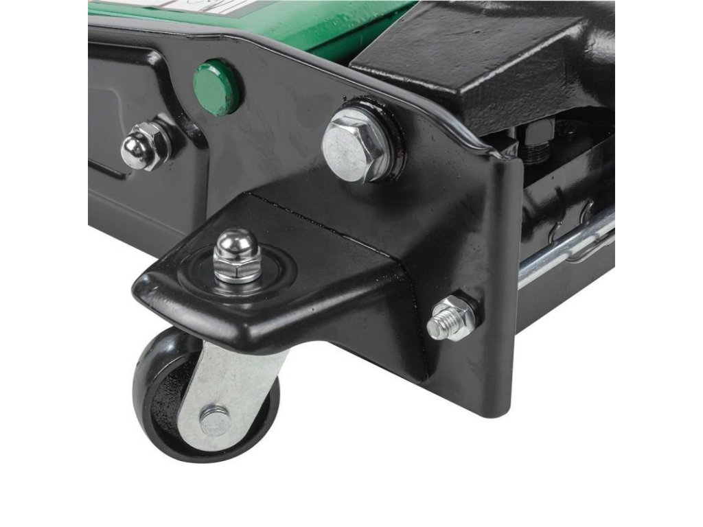 Díky vhodně navrženým kolečkům může být tento zvedák snadno umístěn na jakémkoliv místě pod autem. Jejich konstrukce výrazně usnadňuje manévrování tímto nástrojem. Jejich velký průměr umožňuje snadné ovládání zvedáku i na hrubých površích.