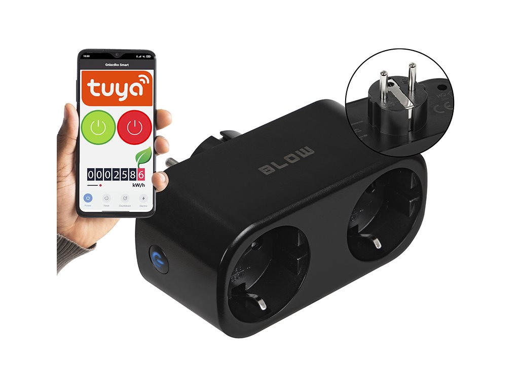Dvojitá inteligentní Wi-Fi zásuvka díky možnosti připojení k internetu umožňuje ovládání domácích spotřebičů pomocí mobilního telefonu nebo tabletu s nainstalovanou dedikovanou aplikací. Produkt poskytuje obousměrnou zpětnou vazbu v reálném čase a umožňuje využívat funkce hlasového ovládání pomocí chytrého boxu Amazon Echo.