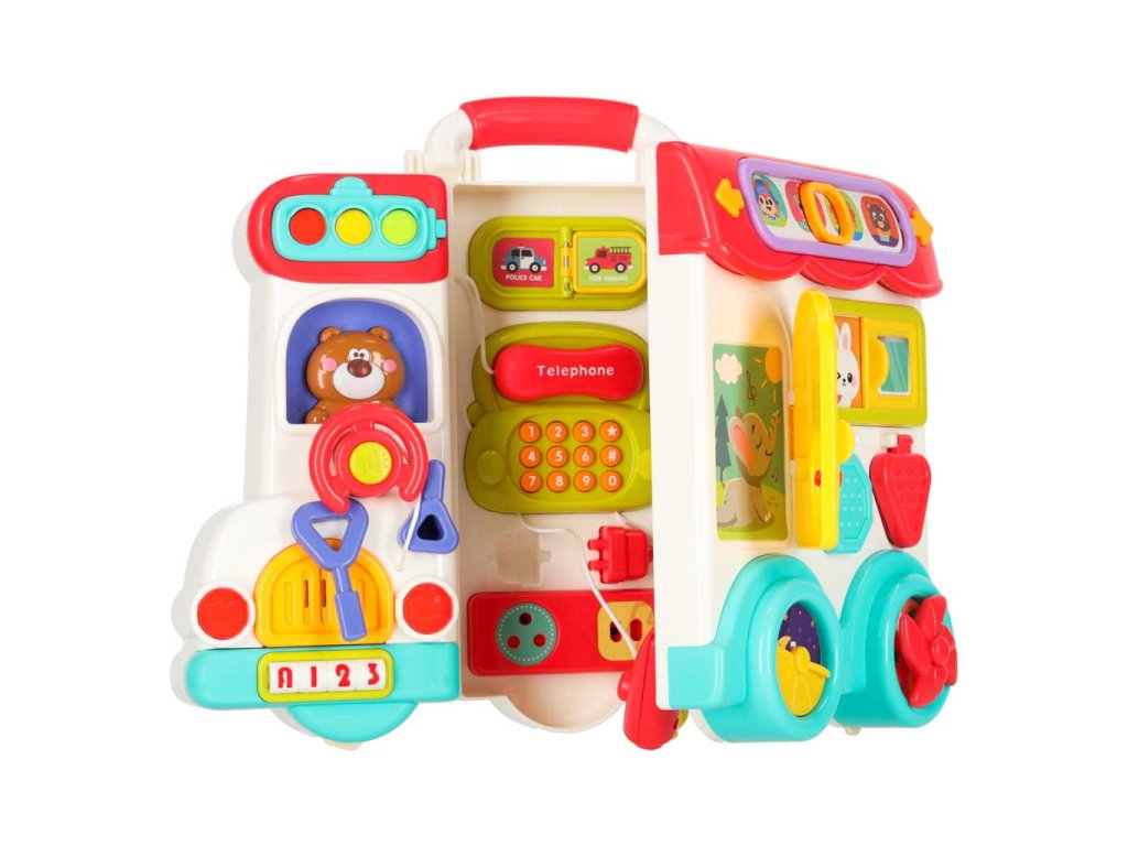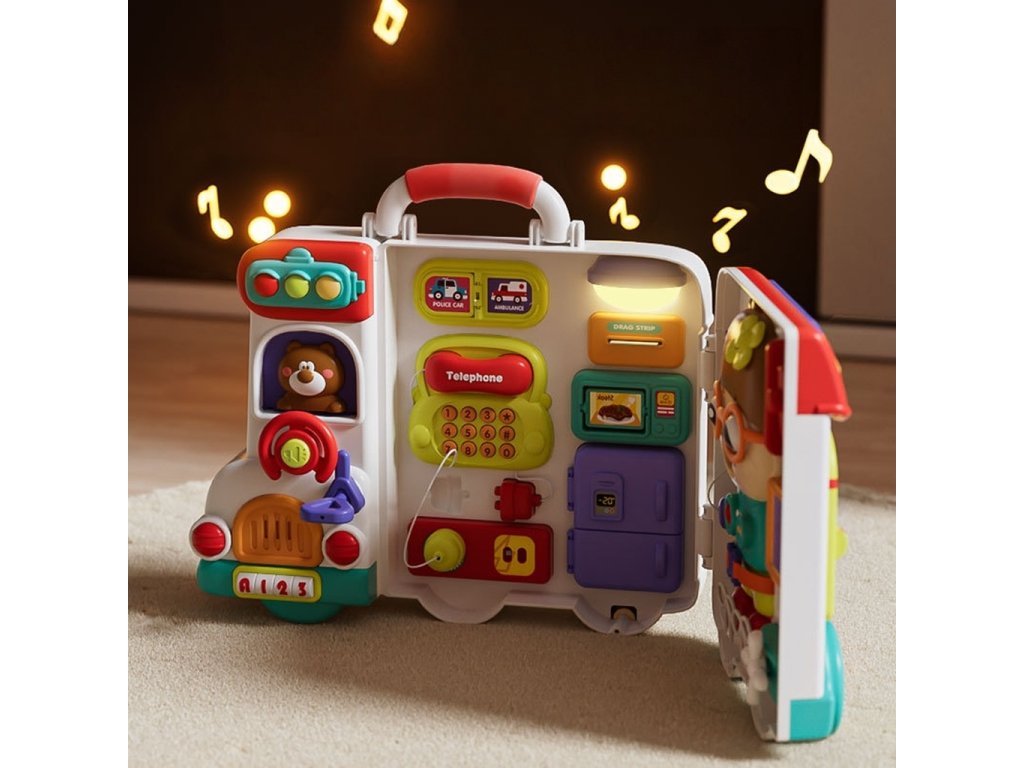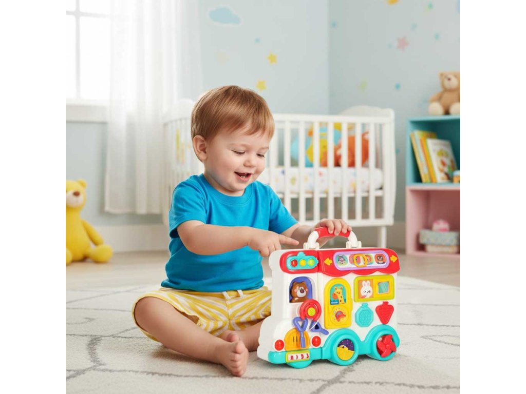 Představte si hračku, která nejen jezdí, bliká a mluví, ale také... myslí na rozvoj vašeho dítěte. Přesně tak funguje tato neobyčejná Montessori sada smyslových aktivit v kufříku - vzdělávací autobus. V jednom důmyslném designu se skrývá minisvět plný pohybů, textur, tlačítek amechanismů, které každodenní hru promění na fascinující objevování. Kufřík se rozkládá jakoprostředí malého laboratoře - a batole si zcela nevědomě procvičuje koncentraci, motoriku a smysly. Je to také místo, kde se prvky na učení každodenních činností stávají záminkou na vytvoření prvních dětských "superschopností". Od zatvárání klapek až poposouvání oken je každý pohyb skutečným krokem k samostatnosti.