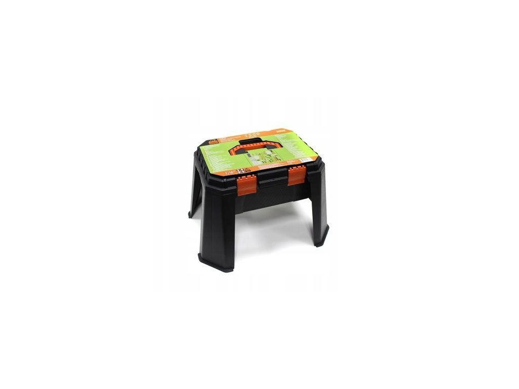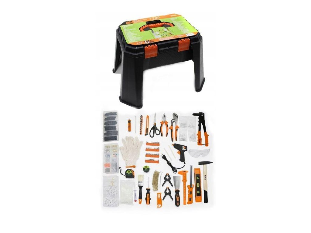 Kompletní a univerzální sada nástrojů, která uspokojí potřeby domácích kutilů i profesionálů. Osvědčí se při zahradních pracích, opravách, montážích, dekorativních a mnoha dalších úkolech. Vše je uzavřeno v praktickém organizéru, který lze použít i jako židli nebo minižebřík – vydrží zátěž až 150 kg!