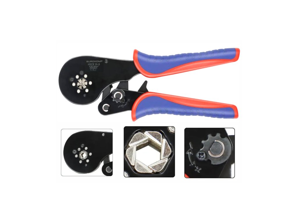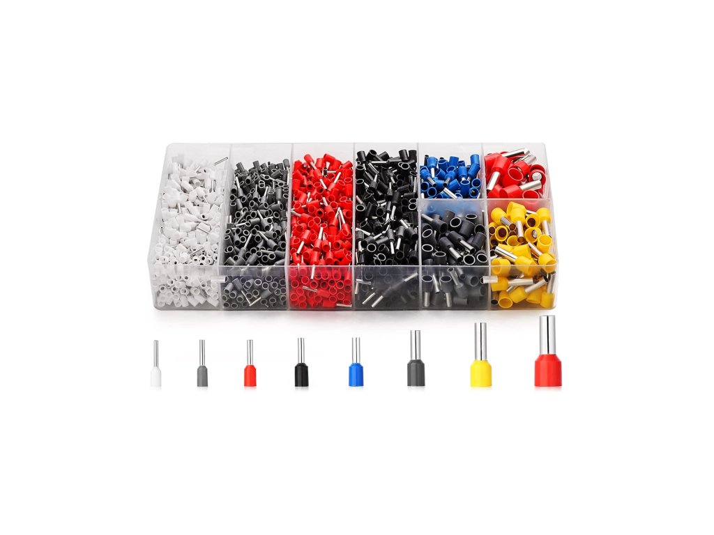 Sada pro ukončení izolovaného kabelu + kleště do 16 mm Lisovací kleště na izolované a neizolované, jednoduché a dvojité koncovky. ŠESTIÚHELNÝ systém krimpování, díky kterému není potřeba velká síla Nejvyšší kvalita zpracování, Jistota dobrého krimpování díky blokovacímu systému, který umožňuje otevřít kleště až po ukončení krimpování. Velký komfort obsluhy díky ergonomickému tvaru a nízké hmotnosti Nástroj je praktický, velmi odolný. **Gumové rukojeti** zlepšují komfort práce Rozsah práce: Pro jednotlivé dutinky: 0,08-16 mm2 Technické údaje: **Koncovky**: izolované a neizolované, jednoduché a dvojité, Hmotnost: 0,36 kg, Délka: 20,5 cm, Zesílená hlava, Praktický automatický lis, Krimpování pomocí jedné ruky, Ráčnový systém podporující krimpování, Nejvyšší kvalita zpracování a dlouhá životnost nástroje, V souladu s normou EN 50109-1. Náš nejlepší model se systémem podporujícím krimpování. V nabízeném modelu je proces krimpování dodatečně podporován ráčnovým systémem. Speciální mechanismus umožňuje komfortní krimpování pomocí jedné ruky. Šestiúhelný systém krimpování V nabízeném modelu je dutinka krimpována ze šesti stran, což znamená, že je velmi pevně upravená na vodiči. Další výhodou tohoto řešení je tvar zalité dutinky, který se blíží kruhu, což výrazně usnadňuje zasunutí takto krimpovaného vodiče do zásuvky. **Kabelové koncovky** na vodiče typu lanko: Množství: 1800 ks Materiál: **PVC** + měď Balení: PVC box s přihrádkami Barva: červená, bílá, žlutá, černá, šedá, modrá Velikost: 500 ks E0508-bílá: (pro vodič 0,5mm2, délka vyčnívajícího prvku 8mm) 400 ks E7508-šedá: (pro vodič 0,75mm2, délka vyčnívajícího prvku 8mm) 350 ks E1008-červená: (pro vodič 1,0mm2, délka vyčnívajícího prvku 8mm) 100 ks E2508-modrá: (pro vodič 2,5mm2, délka vyčnívajícího prvku 8mm) 70 ks E4009-šedá: (pro vodič 4,0mm2, délka vyčnívajícího prvku 9mm) 50 ks E6012-žlutá: (pro vodič 6mm2, délka vyčnívajícího prvku 12mm) 30 ks E1012-červená: (pro vodič 10mm2, délka vyčnívajícího prvku 12mm)Doplňkové parametry