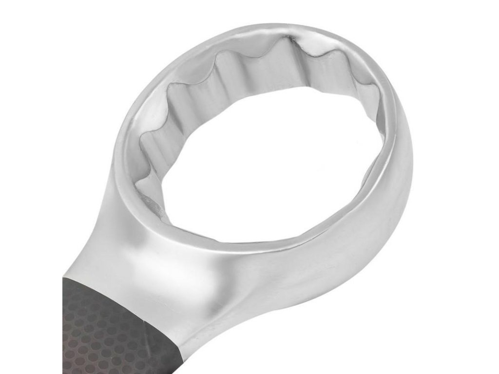 Očková část – 12-úhelníková konstrukce, ideální na práci s velmi zatíženými závitovými spoji, poskytuje pevný úchop a minimalizuje riziko sklouznutí nástroje.