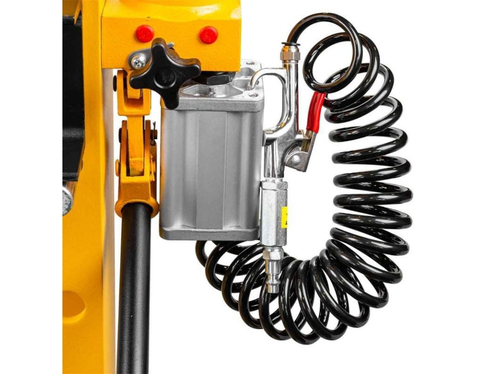 - Typ pohonu: hydraulicko-pneumatický (ruční páka + připojení k kompresoru)