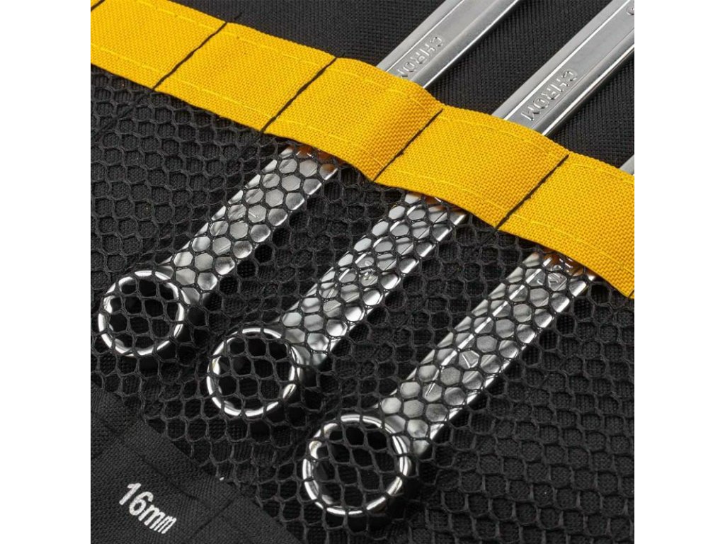 Dlouhý, silný řemínek umožňuje snadné zapnutí a přenášení obalu. Stačí svinout pouzdro a zapnout ho suchým zipem, abyste pohodlně přesunuli nástroje na jakékoliv místo.