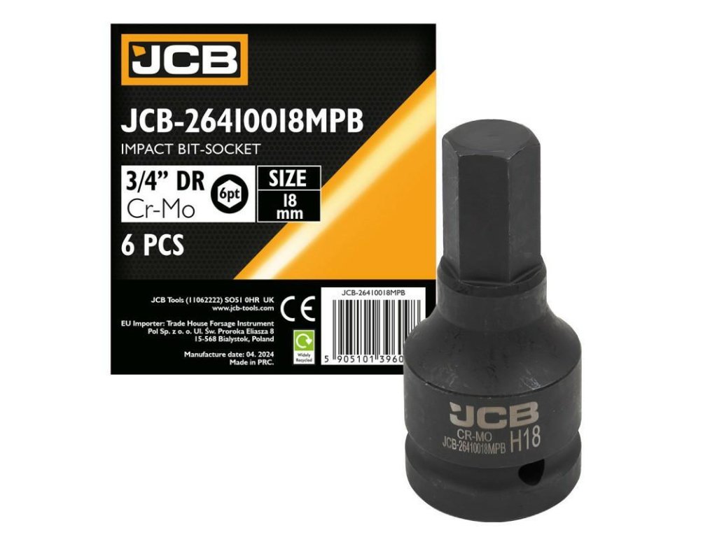 JCB Nástrčná hlavice BIT rázová 3/4" 18mm 6-hranná Cr-Mo NÁSTRČNÝ KLÍČ