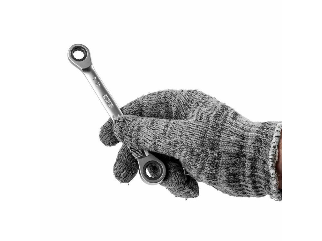 Oboustranný plochý očkový klíč s ráčnou 10×12 mm je profesionální nástroj navržený pro lidi, kteří očekávají maximální efektivitu a pohodlí při práci. Díky ráčnovému mechanismu můžete šrouby uvolňovat a utahovat bez nutnosti odnímání klíče ze spojovacího prvku – co obzvlášť oceníte v těsných a těžko přístupných místech.
