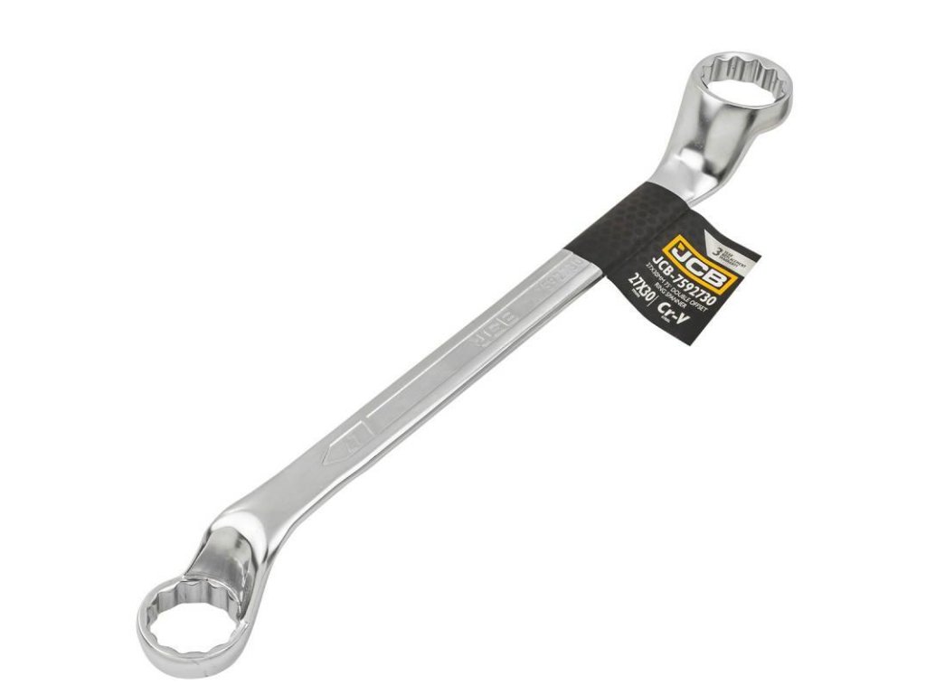 JCB OBOJSTRANNÝ OČKOVÝ KĽÚČ OHNUTÝ O 75 STUPŇOV 27x30 mm Cr-V 12-hranný
