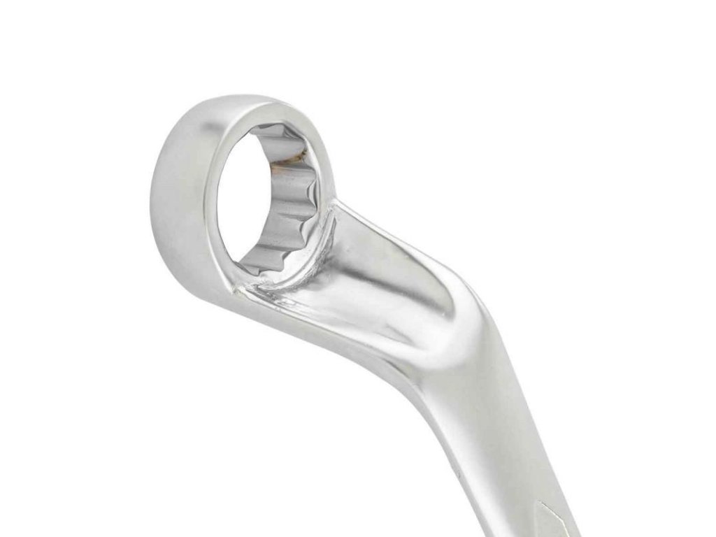 Oboustranný očkový klíč ohnutý 75° s rozměry 17x19 mm je spolehlivý ruční nástroj, vytvořený pro práce v omezeném prostoru a při těžko přístupných závitových spojích. Vybaven 12-úhlovým profilem a úhlem ohnutí 75° na obou koncích, klíč poskytuje vysoký komfort práce a umožňuje jednoduché operace i na místech, kde standardní klíče selhávají.