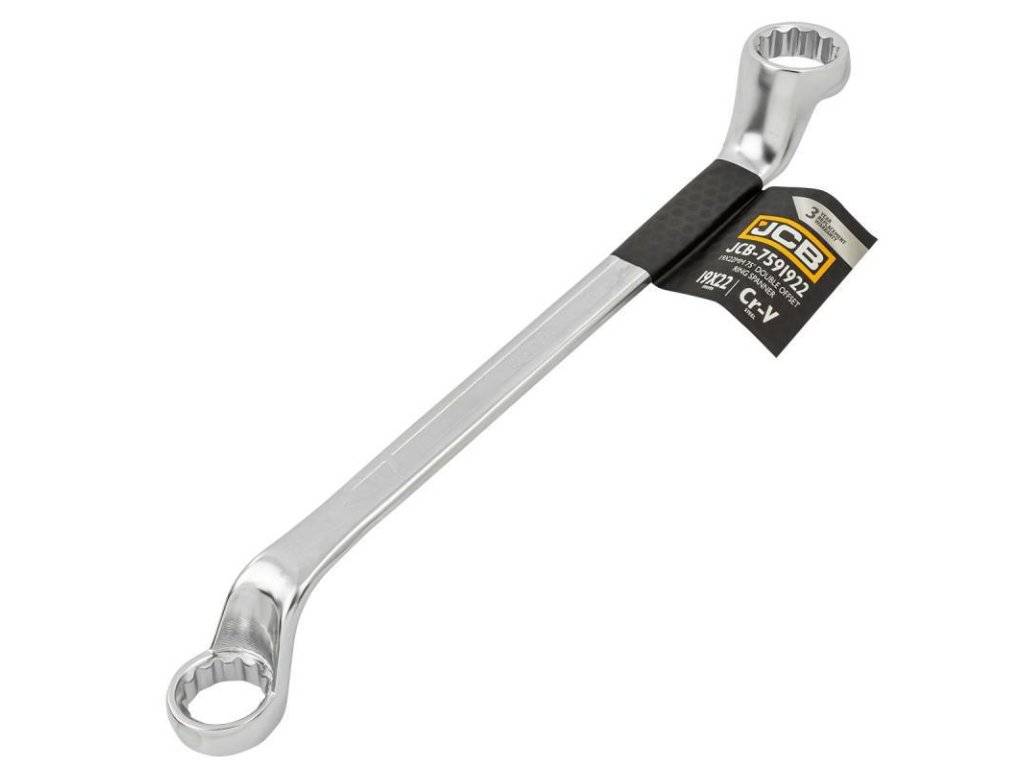 JCB OBOUSTRANNÝ OČKOVÝ KLÍČ OHNUTÝ O 75 STUPŇŮ 19x22 mm Cr-V 12-HRANDÝ