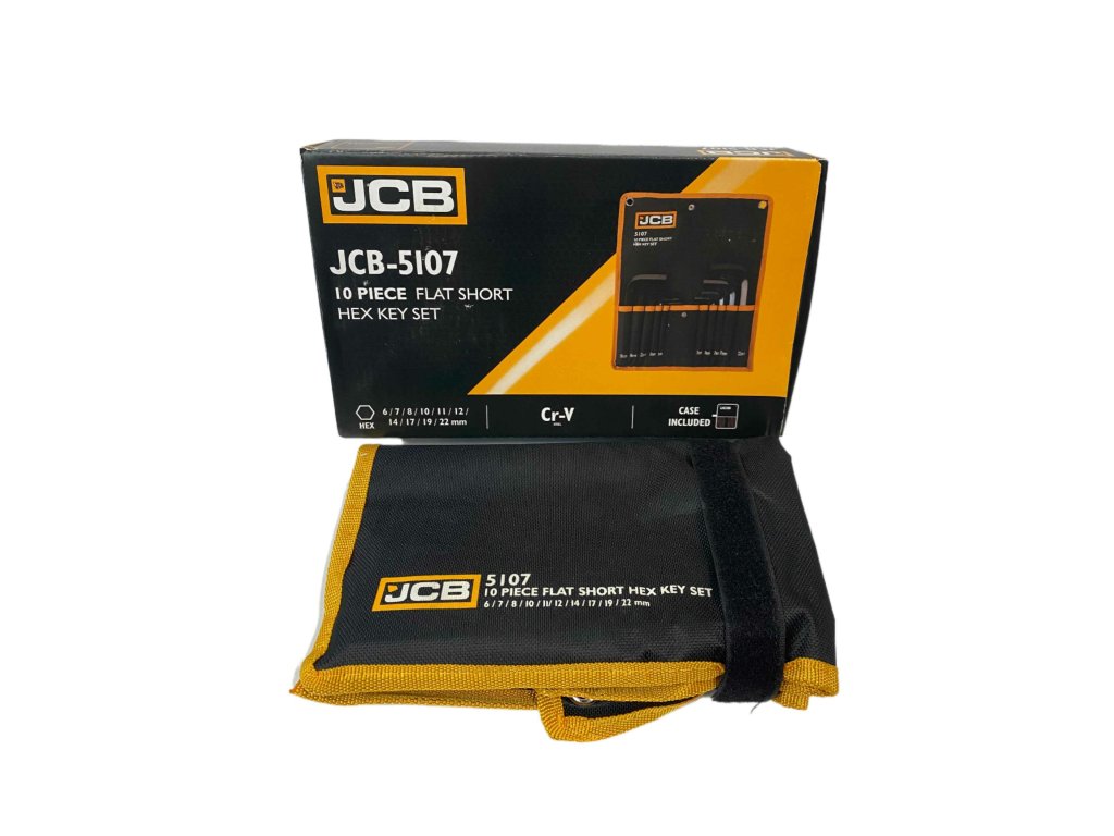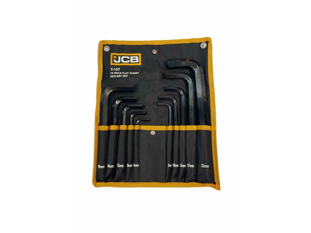 Sada šestihranných imbusových klíčů JCB 10 ks (6–22 mm) na plachtě je pevný, funkční a odolný nástroj, který se osvědčí všude tam, kde je důležitá síla, přesnost a dostupnost.