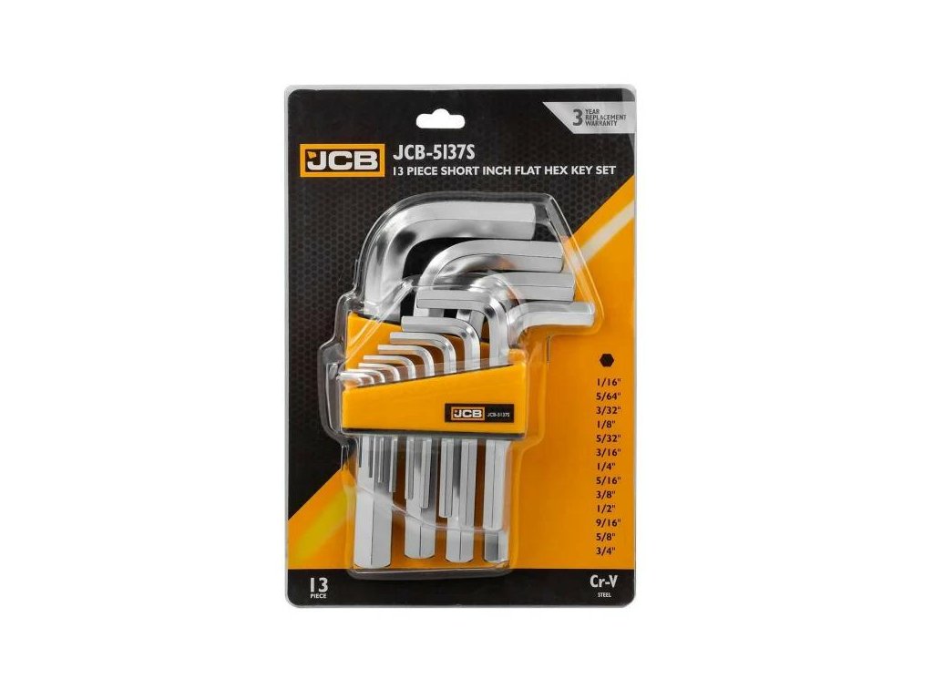 JCB-5137S je kompletní sada 13 imbusových klíčů v palcovém (imperiálním) standardu, vyrobených z odolné chrom-vanadiové oceli (Cr-V). Nástroje byly navrženy s ohledem na profesionální a hobby použití, zejména při servisu strojů, zařízení a komponentů vyrobených v USA a Velké Británii, jakož i v elektronice a přesné mechanice.