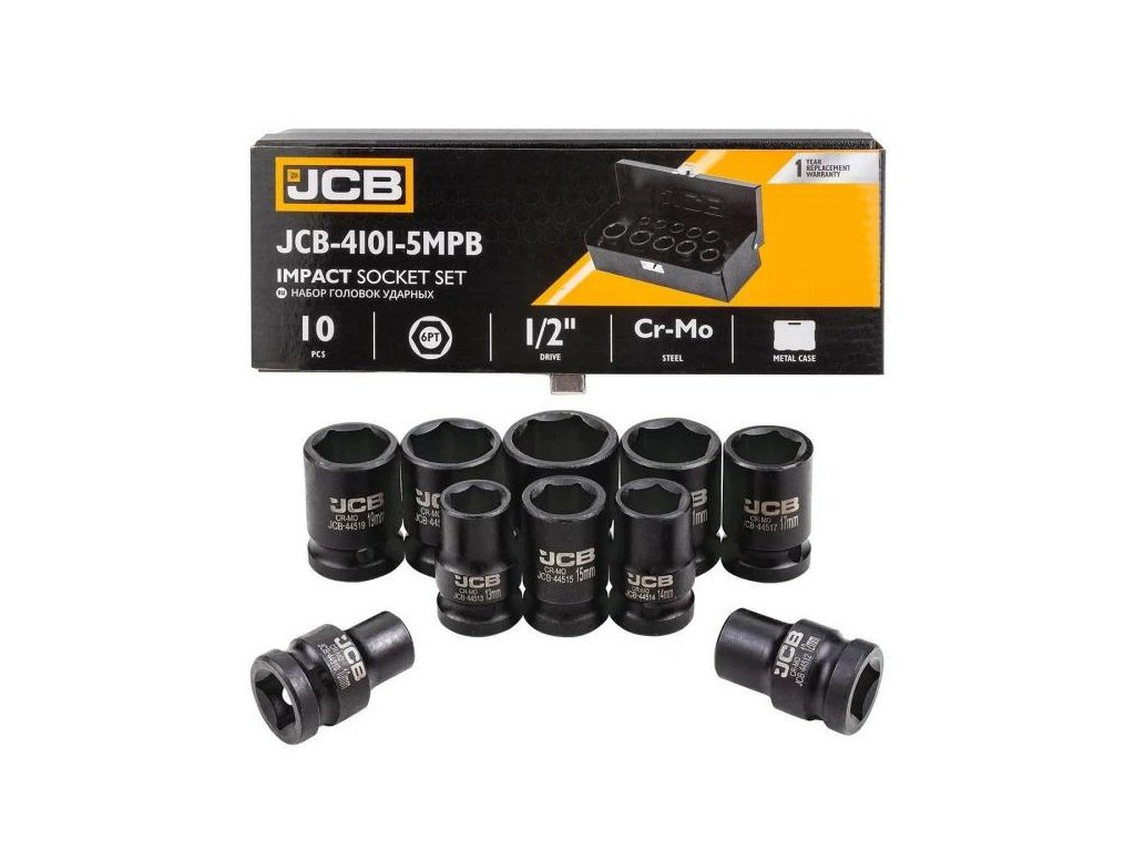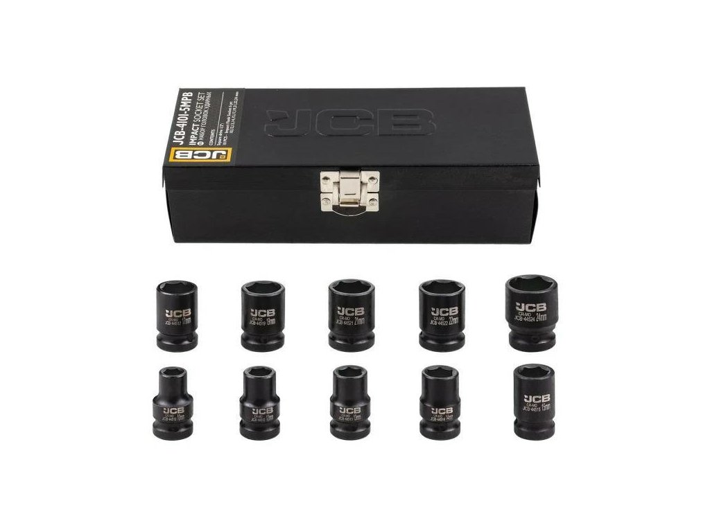 JCB-4159-5MPB je kompletní sada 10 rázových nadstavců určená na nejnáročnější úlohy v dílnách, autoservisech a během montážních prací. Vyrobeno z vysoce odolné oceli Cr-Mo (chrom-molybdénové), nadstavce nabízejí výjimečnou odolnost proti praskání, nárazům a deformacím, i při práci s pneumatickými nebo elektrickými klíči.
