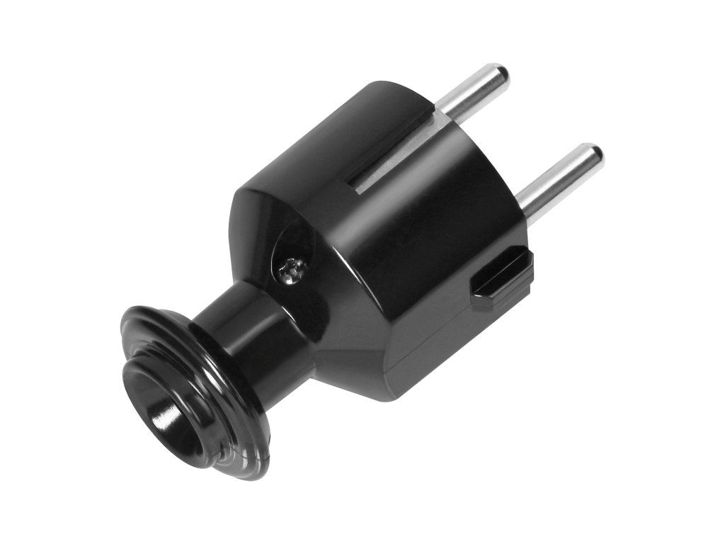 Zástrčka je vyrobena z vysoce kvalitního plastu (PC). Vhodná pro jmenovité napětí 230V a jmenovitý proud 16A. Pro použití v suchých prostorech (IP20). Černá barva.