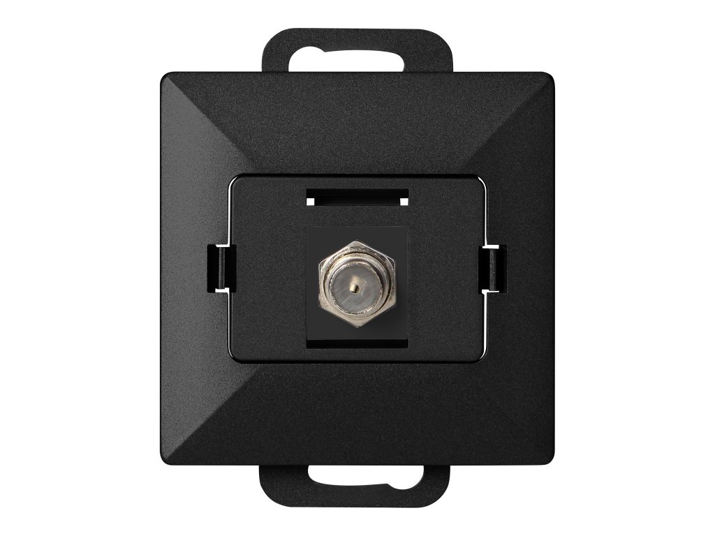 Jednoduchá TV anténní zásuvka, typ F. Umožňuje připojení jednoho kabelu s F-konektorem. Měla by být používána v interiéru (IP20).