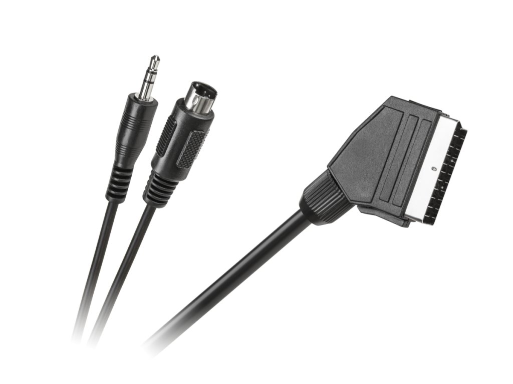 Propojovací kabel zástrčka Euro (scart) - zástrčka mini jack (3,5mm) + zástrčka SVHS Délka: 15m Kulatý kabel Umožňuje připojení např. počítače k televizoruPropojovací kabel zástrčka Euro (scart) - zástrčka mini jack (3,5mm) + zástrčka SVHS