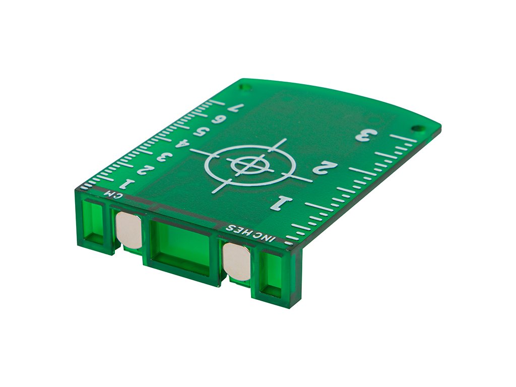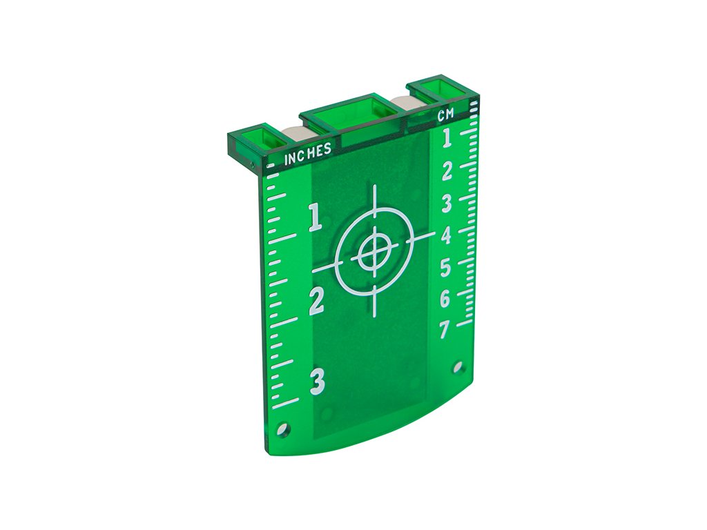 Cílová deska pomáhá zvýšit viditelnost laserového paprsku, díky čemuž jsou měření ještě přesnější. Deska byla vybavena 2 magnety, díky kterým ji můžeme umístit na těžko dostupná místa. Specifikace:Stupnice v centimetrech: od 0 do 7cmPalcová stupnice: od 0" do 3"Rozměry desky: 9,5cm x 7cmDoplňkové parametry