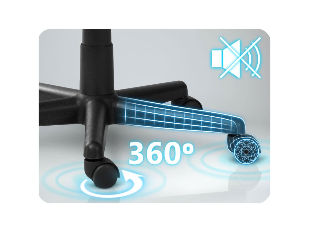 Tichá, potažená kolečka 360° umožňují plynulé posouvání bez hluku a bez poškrábání podlahy.