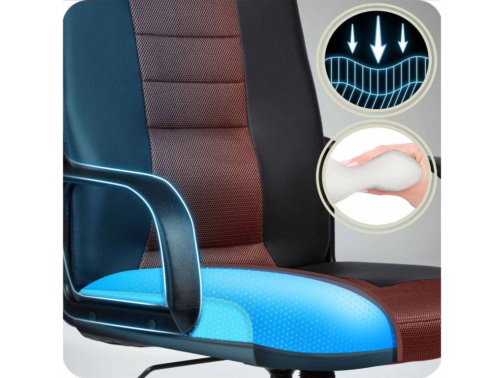 - Ergonomické polstrování se dokonale přizpůsobuje tělu, rovnoměrně rozkládá tlak a odlehčuje záda po celý den.