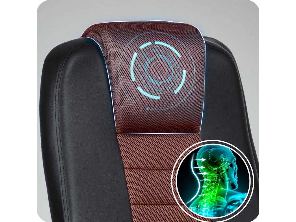 Vyprofilovaná část bederní pomáhá udržovat ergonomickou bezpečnou polohu. Vyprofilovaný opěrný polštář rovnoměrně rozkládá tlak, odlehčuje svalům a zabraňuje bolestem krční páteře.