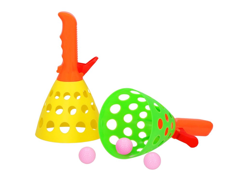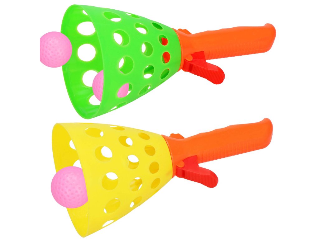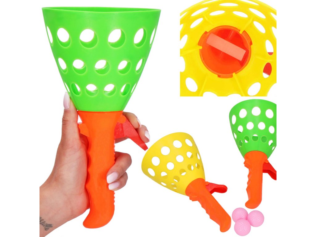 - Prvky v sadě: 2x košíček, 2x vystřelovač, 3x míček (držadlo s vystřelovačem je třeba samostatně sestavit s košíčkem)