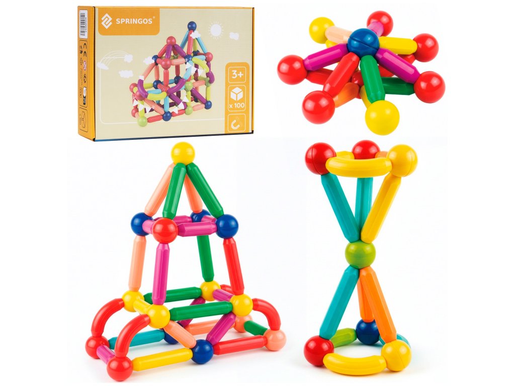 - 100 prvků (rovné tyčky, zahnuté tyčky a spojovací koule)