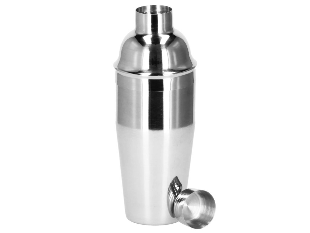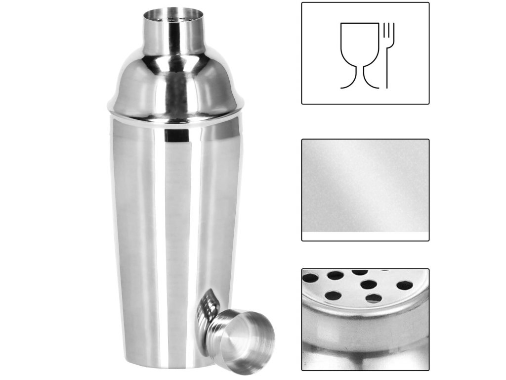 1 x shaker (třídílný) - výška: 25 cm / průměr nálevky: 8,5 cm / průměr základny sklenice: 6 cm / průměr síta: 3,6 cm
