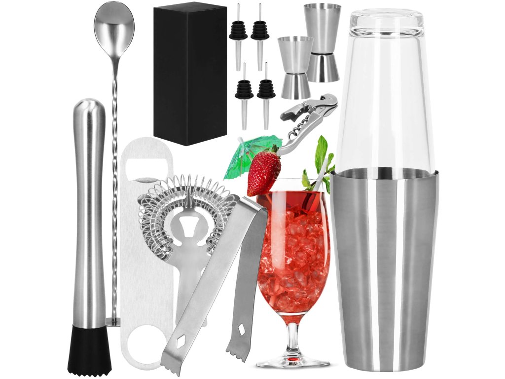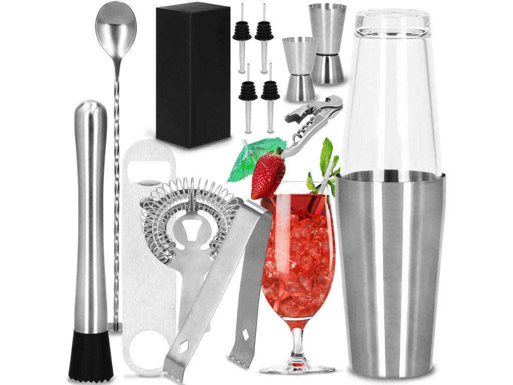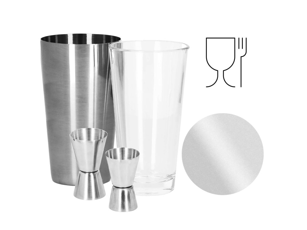 - 1 x bostonský shaker (skleněná sklenice a nerezový hrnek) celková výška: 28 cm