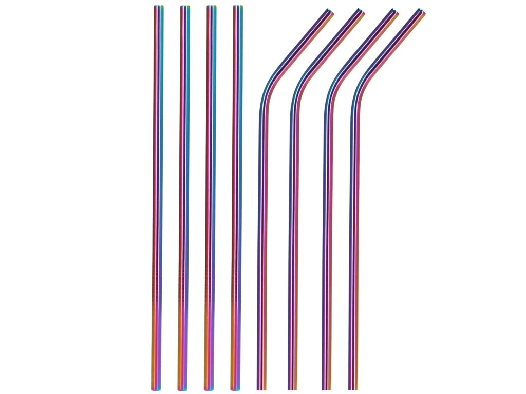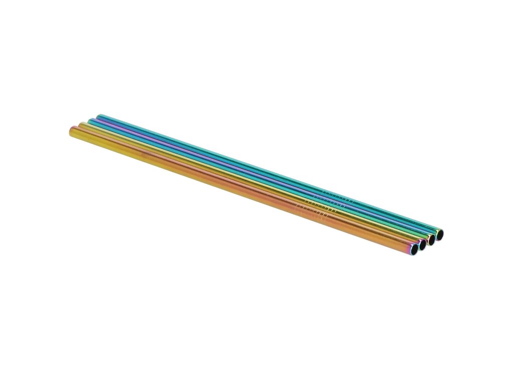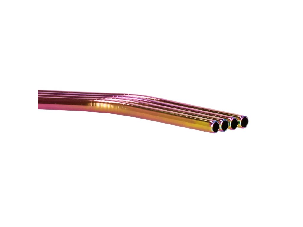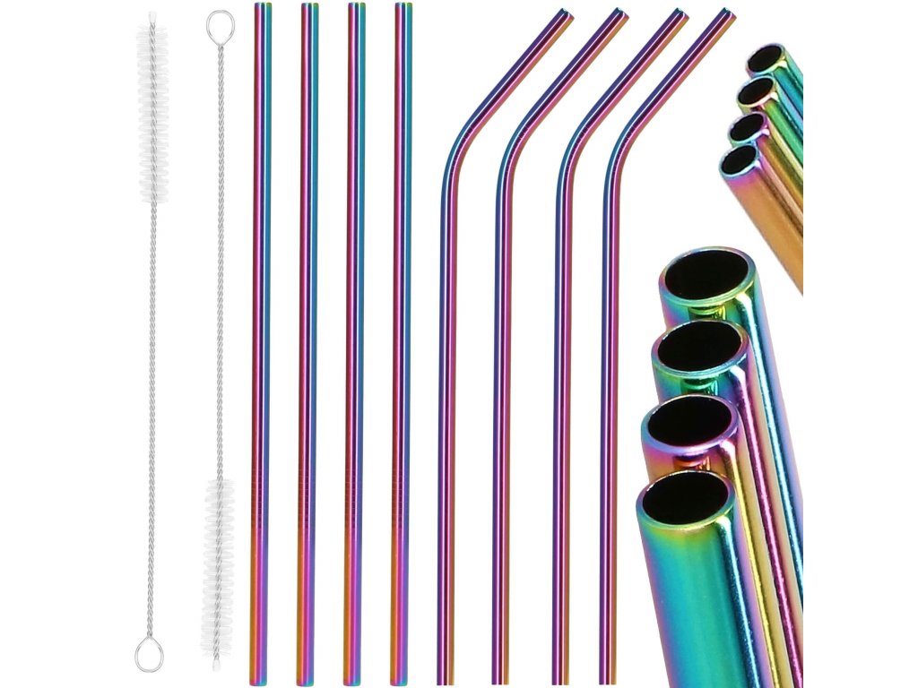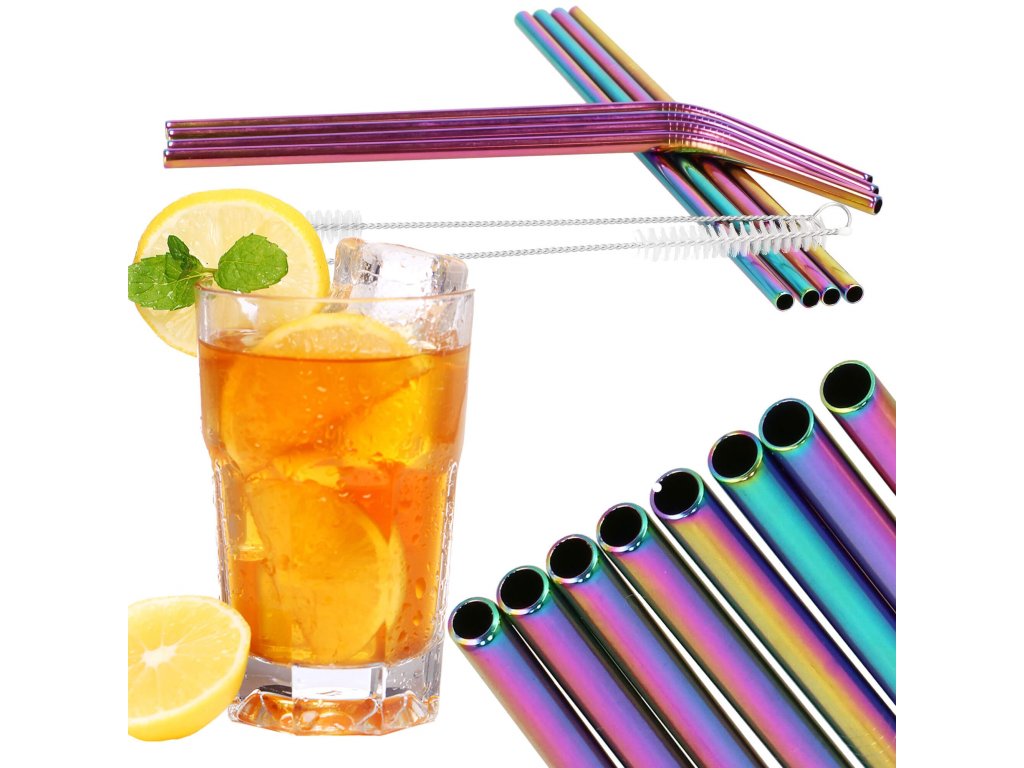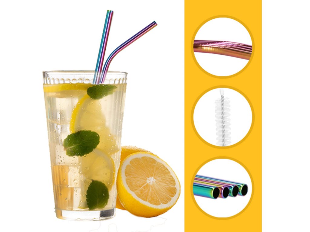 Sada barevných brček na nápoje se štětcem na čištění a plátěným obalem.