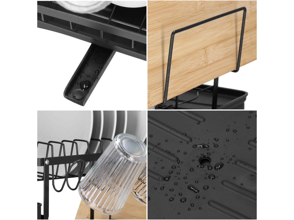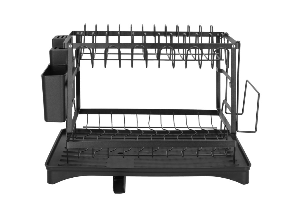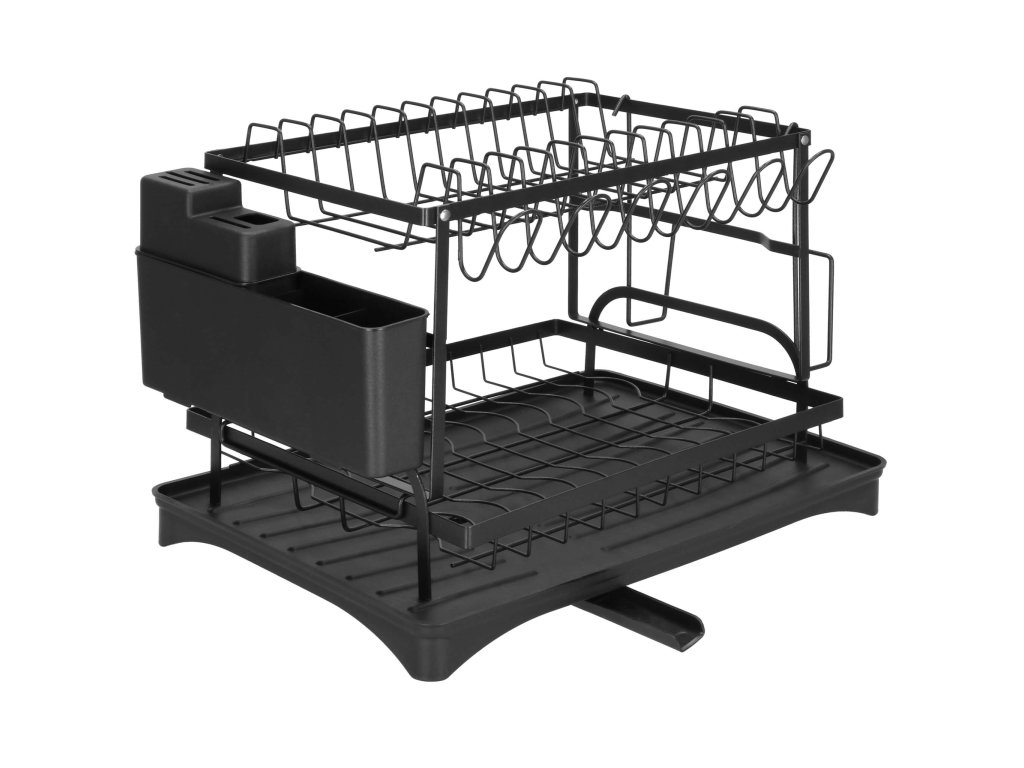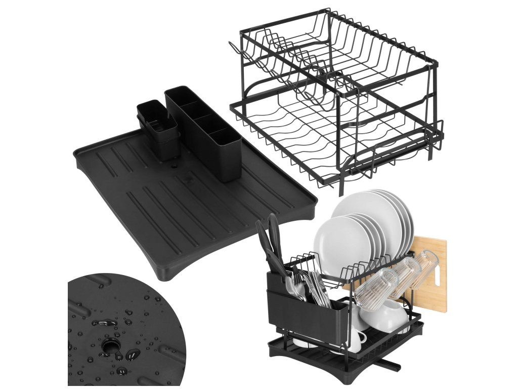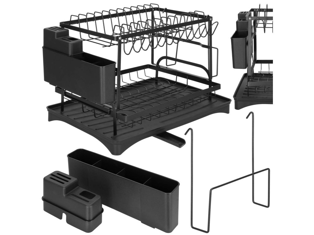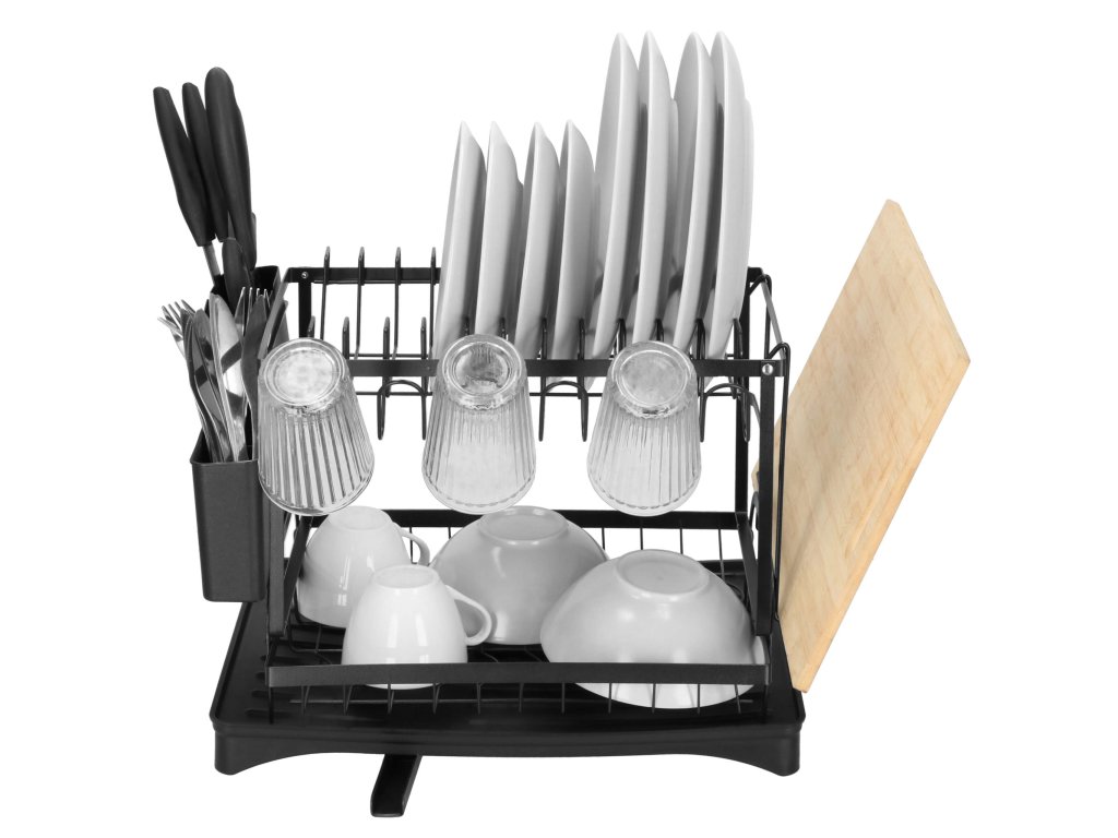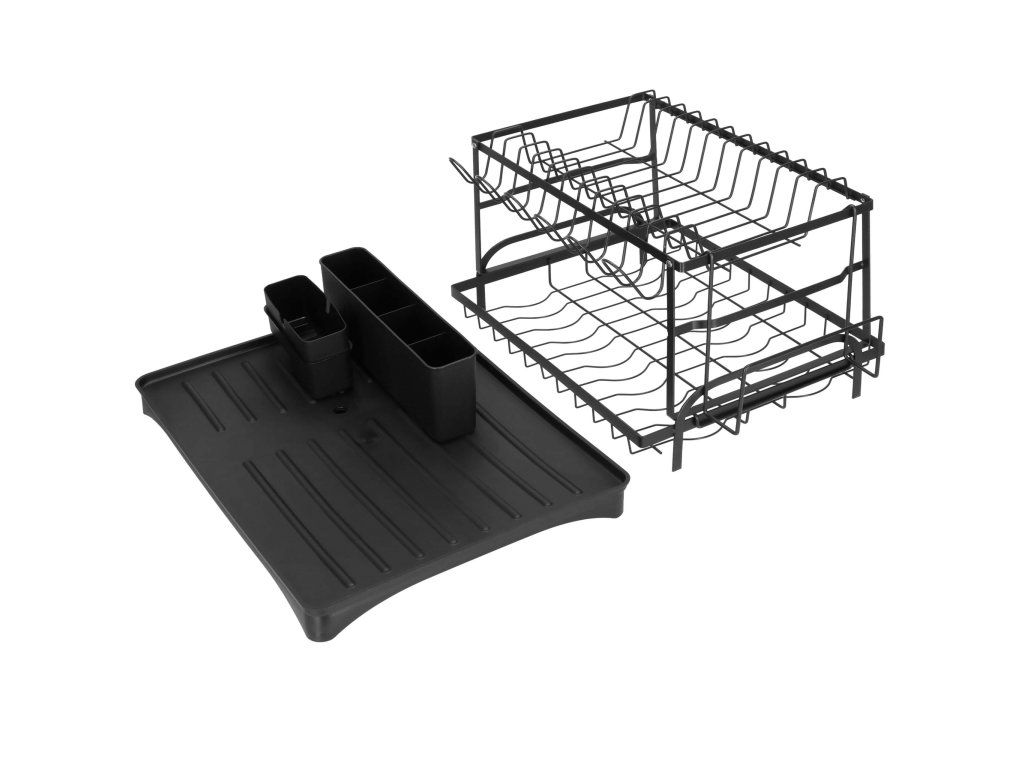 - Typ: dvouúrovňový odkapávač na nádobí černá vodní tácka / vyjímatelný držák na příbory / přídavný držák