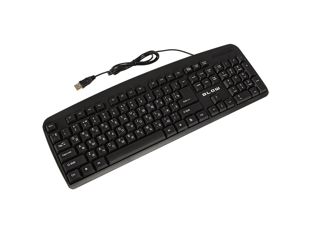 Vysoce kvalitní drátová klávesnice značky BLOW. Produkt se vyznačuje nejpopulárnějším uspořádáním kláves QWERTY, na kterých jsou navíc označena písmena cyrilice.