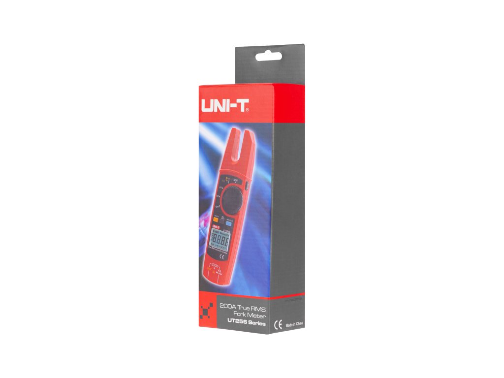 Měřič UT256B se vyznačuje ergonomickým a lehkým designem, což usnadňuje jeho přenášení a používání v úzkých prostorech. Rozpětí čelistí 14,7 mm umožňuje práci s vodiči různé tloušťky. Podsvícený LCD displej zajišťuje čitelnost výsledků ve špatně osvětlených místech a funkce automatického vypínání po 15 minutách nečinnosti pomáhá šetřit energii. Napájený dvěma bateriemi 1,5 V (R03), UT256B je pohodlný k používání a je dodáván s měřicími vodiči a pouzdrem, což umožňuje snadné přenášení a skladování.