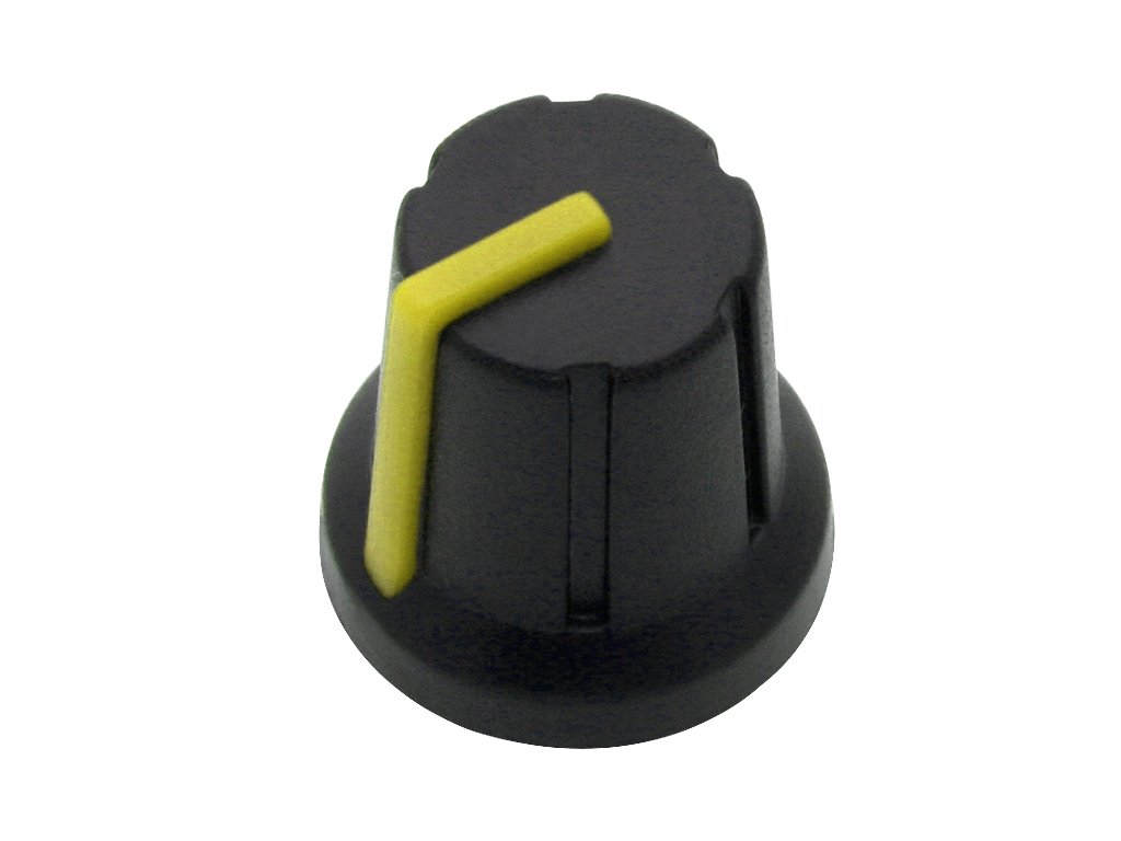 KNOFLE POTENCIOMETRU ČERNÁ 16MM GC16P ŽLUTÁ