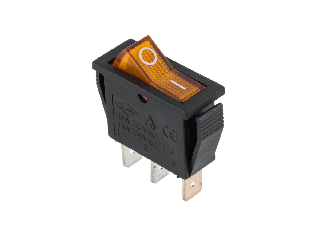 Kolébkový vypínač 230V žlutý 3pin PRK0007E