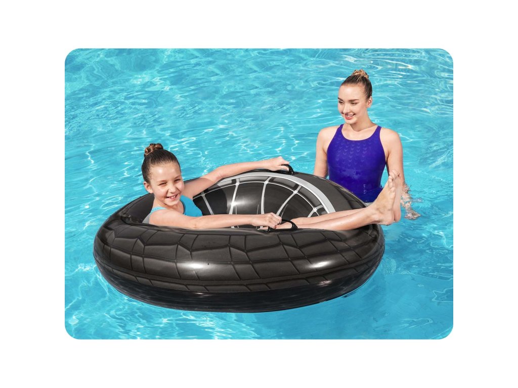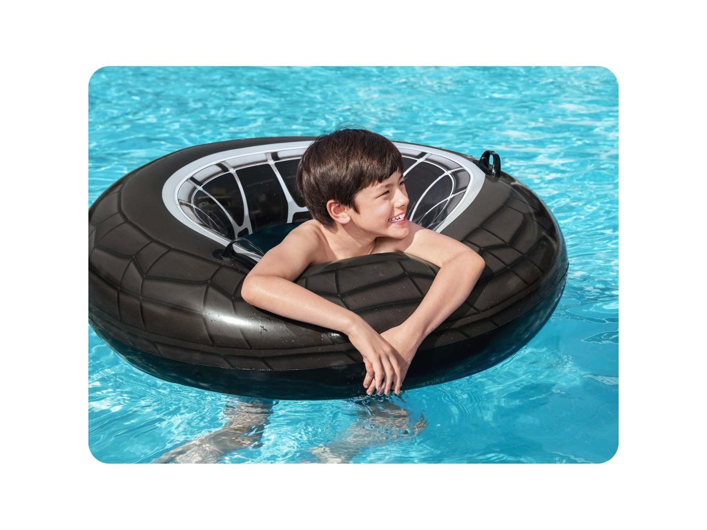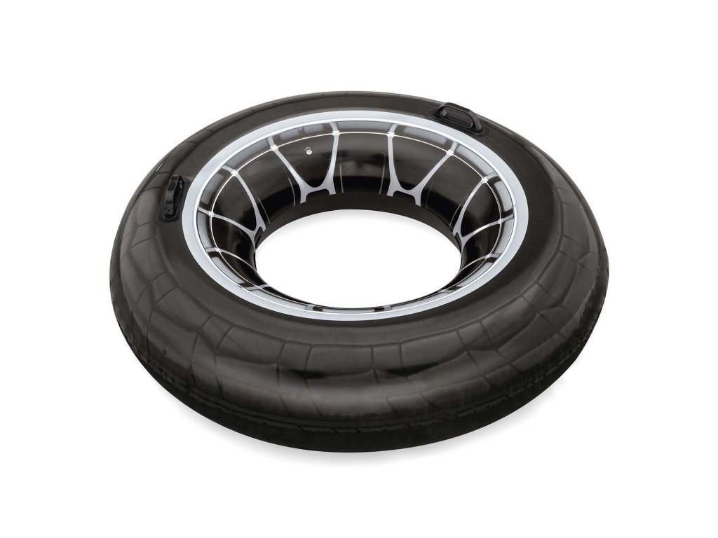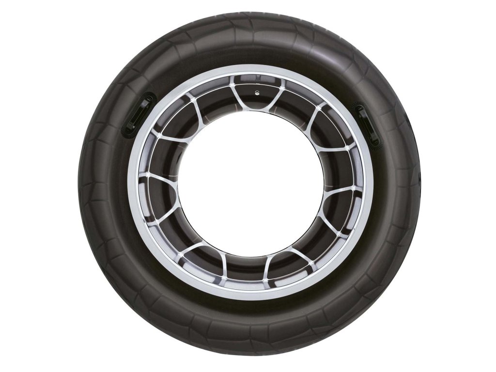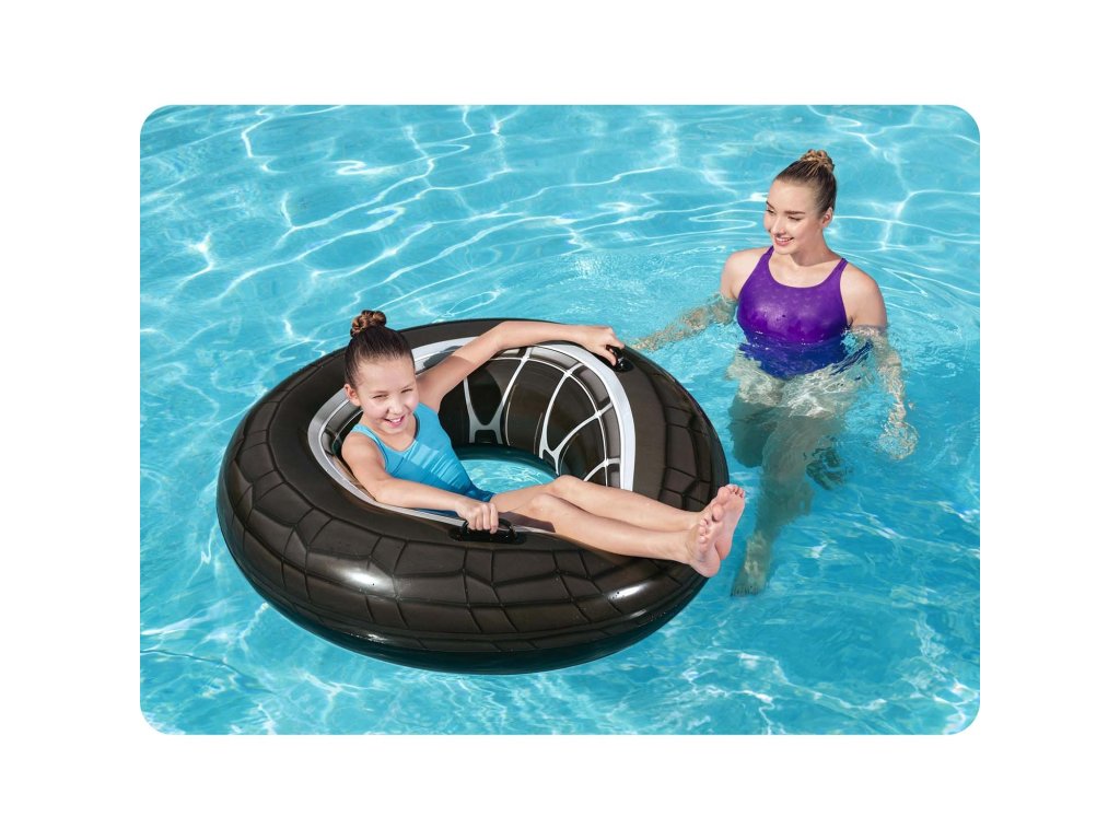 Velký nafukovací kruh Bestway, který vzhledem připomíná automobilovou pneumatiku, jistě potěší všechny plážové návštěvníky.