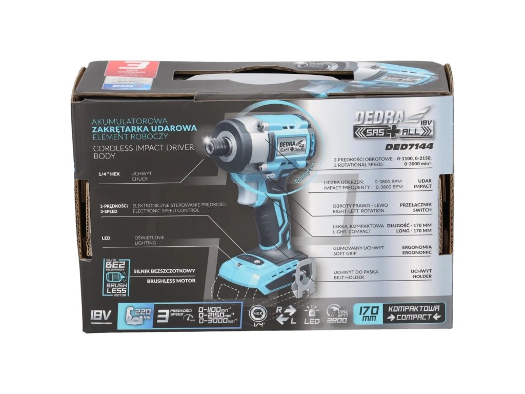Technické údaje akumulátorového utahovače DEDRA SAS+ALL DED7144: