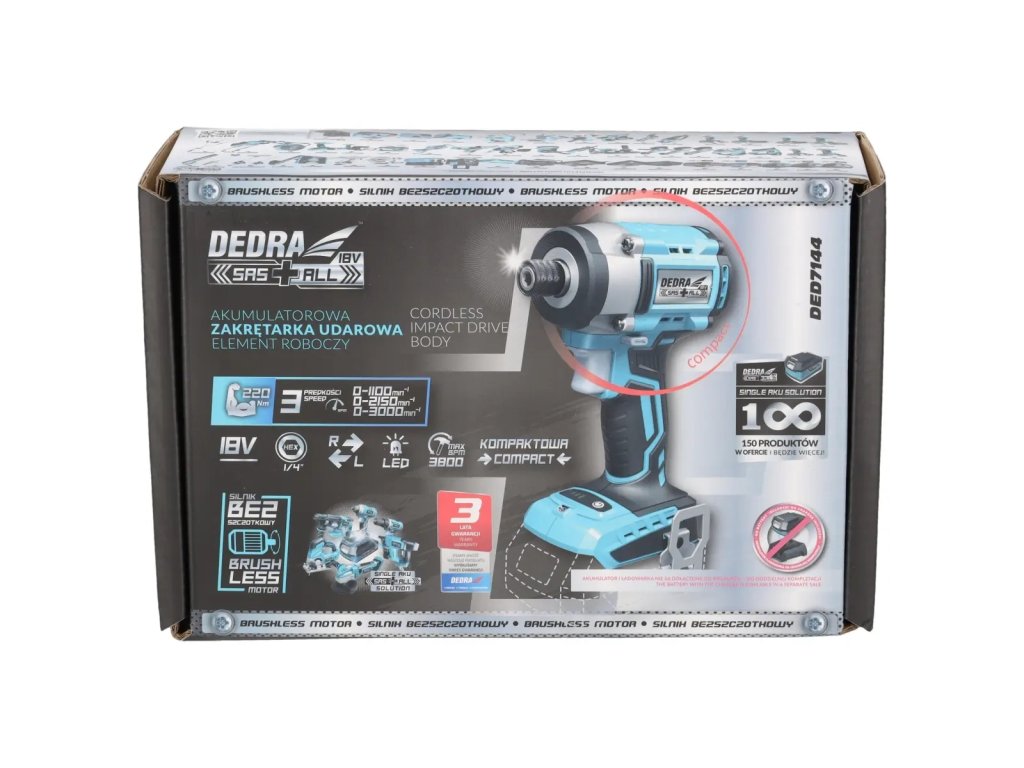 Kompaktní bezkartáčová utahovačka, DEDRA DED7144 220Nm, 18V