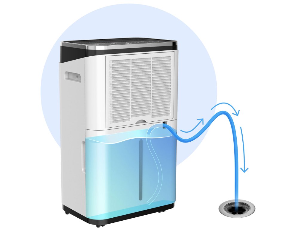 Vyberte režim stálého odtoku – bez vyprazdňování zásobníku, bez přerušení v práci. Ideální řešení pro dlouhé, bezobslužné odvlhčování.