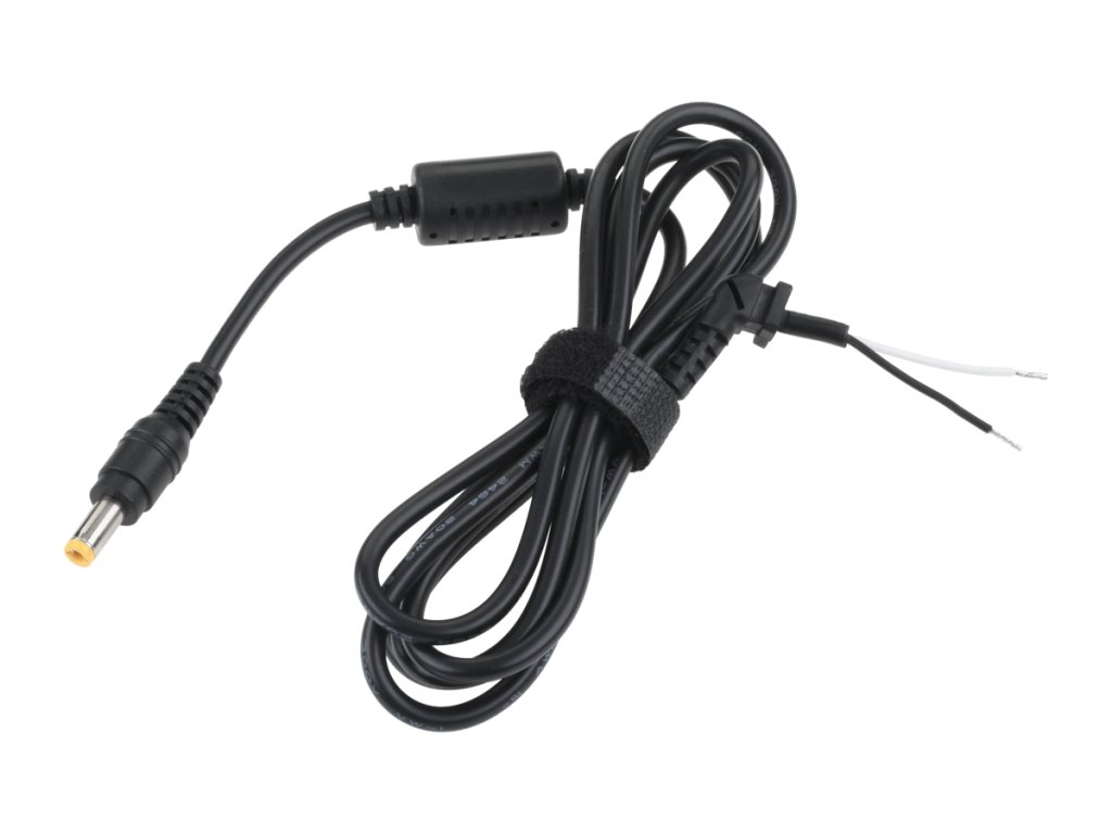 Konektor o standardních rozměrech 5,5 mm (vnější průměr) na 2,5 mm (vnitřní průměr) je vybaven odolným kabelem, což zajišťuje jeho odolnost vůči mechanickému poškození a každodennímu používání. Ideální pro montáž v různých modelech napájecích zdrojů pro notebooky, konektor zaručuje stabilitu připojení a spolehlivý provoz.