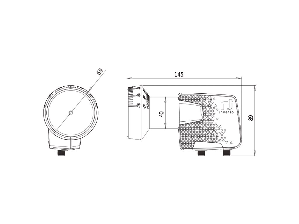 Vstupní kmitočtový rozsah: 10,7 GHz ~ 12,75 GHz Rozsah výstupních frekvencí: 950 MHz ~ 2150 MHz Frekvence LO nízkého kmitočtu: 9,75 GHz Frekvence LO vysokého kmitočtu: 10,6 GHz Šum: 0,3 dB typ. (0,7 dB max.) Přesnost LO frekvence při 25 °C: Max. ± 500 kHz Posun teploty LO: max. ± 1,0 MHz Fázový šum LO při 10 kHz: -80 dBc / Hz max. Konverzní zisk: 55 dB min. Rozdílový zisk (v celém pásmu): ± 4 dB Potlačení obrazu: 40 dB min. Třetí řád intermodulace - ICP3: 10 dBm min. Bod komprese 1 dB (@ výstup): 0 dBm min. Křížová izolace polarizace: 22 dB typ. Ovládací signál Ca (V): 11,0 V ~ 14,0 V Ovládací signál Cb (H): 16,0 V ~ 20,0 V Ovládací signál Cc (přepínání pásem): 22 kHz ± 4 kHz, 0,4 V ~ 0,8 V pp Výstupní VSWR: 2,5: 1 V pásmová úroveň: -60 dBm max. Aktuální spotřeba: max. 120 mA @ 11 VDC ~ 20 VDC Provozní teplota: -30 °C ~ +60 °C Výstupní impedance: 75 Ohm Typ výstupního konektoru: Typ F (samice) Poměr F / D paraboly: 0,6 Hmotnost: 218gVstupní kmitočtový rozsah: 10,7 GHz ~ 12,75 GHz