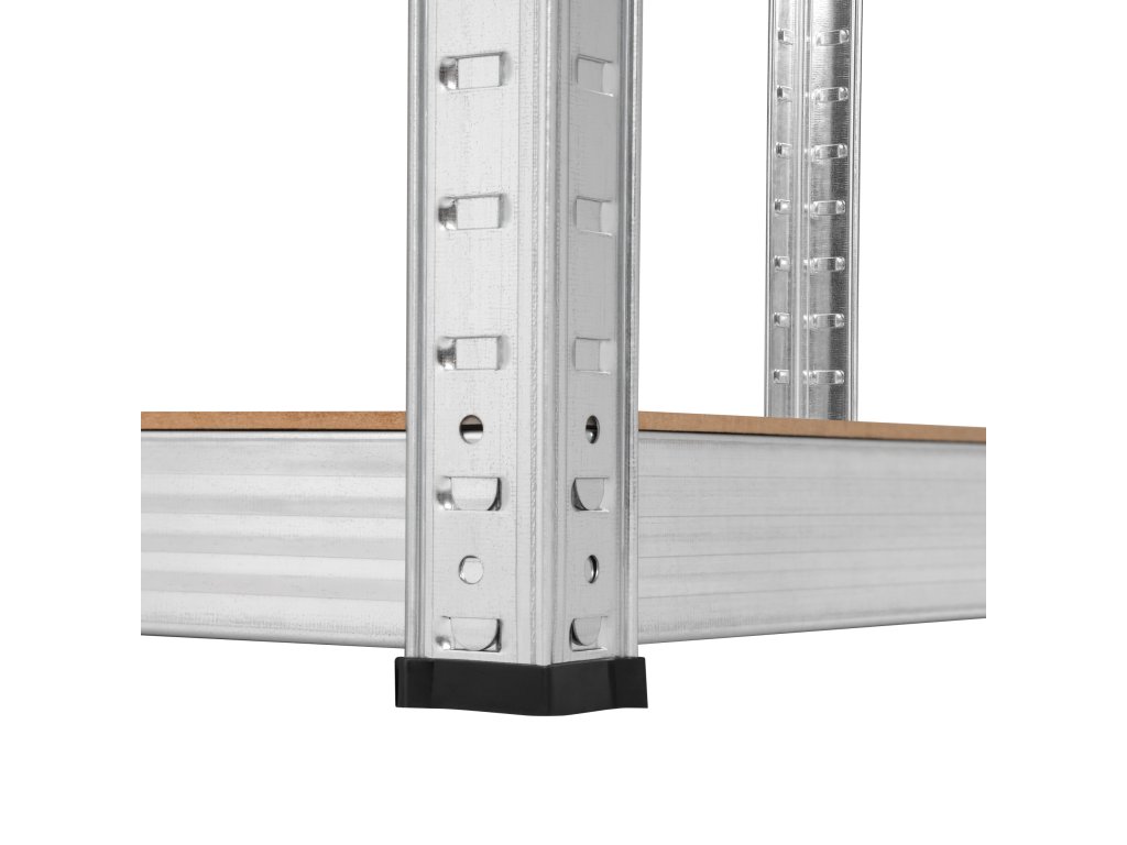 Regál je vybaven 5 nastavitelnými policemi, což podle potřeby umožňuje libovolnou konfiguraci prostoru v dílně nebo skladu. Můžete také upravit vzdálenost mezi policemi, abyste uskladnili různé velikosti předmětů.