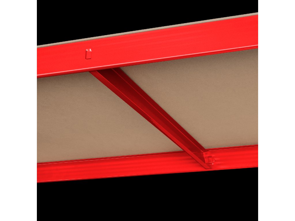Regál Rebel byl vyroben z pevného kovu, který zaručuje jeho odolnost a odolnost vůči poškození. Další jištění v podobě příčných výztuh polic umožňuje na něm bez obav ukládat těžké předměty.