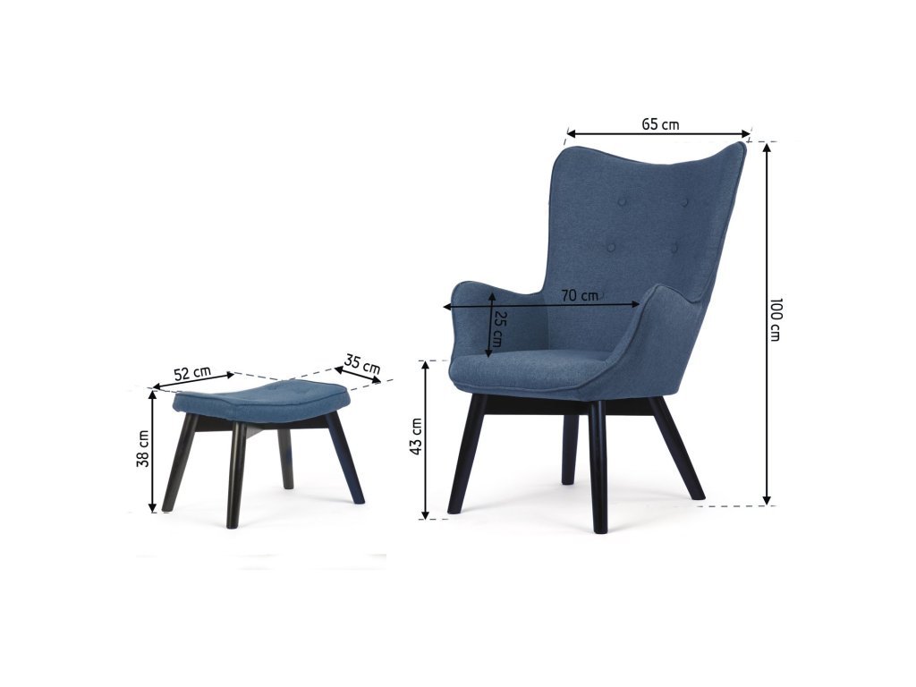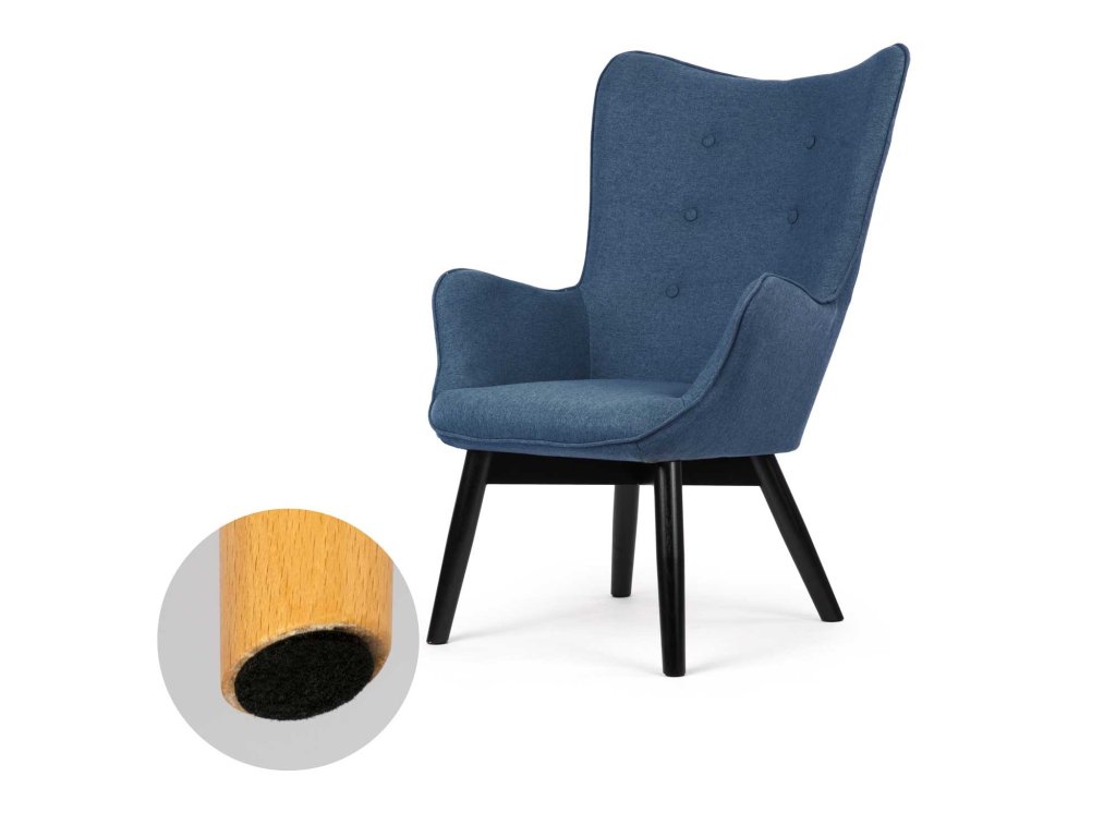 Bukové nohy křesla a podnožky podšité plstí ochrání podlahu před poškrábáním.