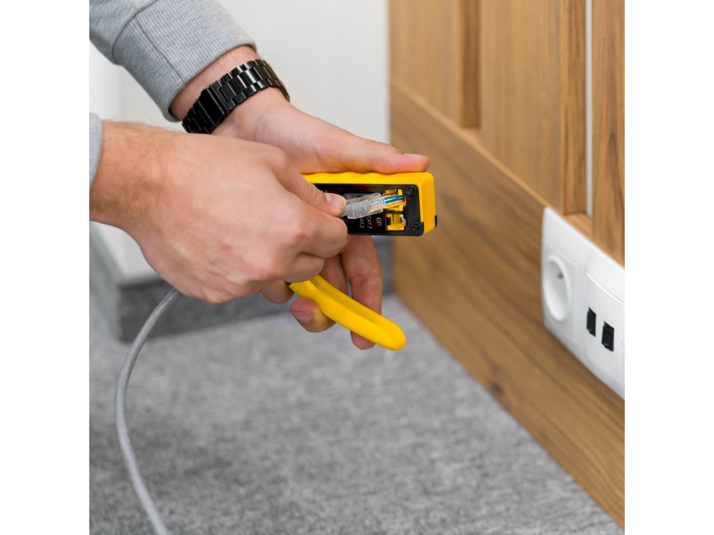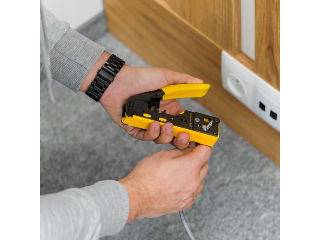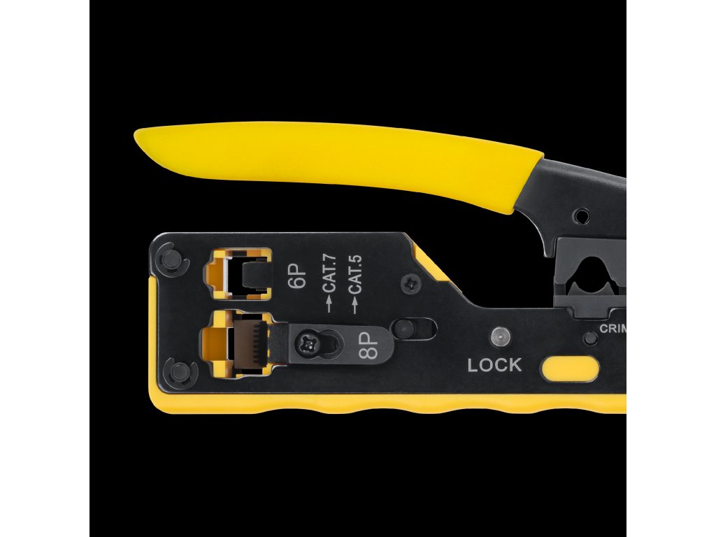 S tímto nástrojem můžete snadno krimpovat a svírat telefonní a počítačové koncovky. Funkčnost nástroje zvyšuje také vestavěný nožík, který umožňuje stříhání drátů a odizolování kabelů.