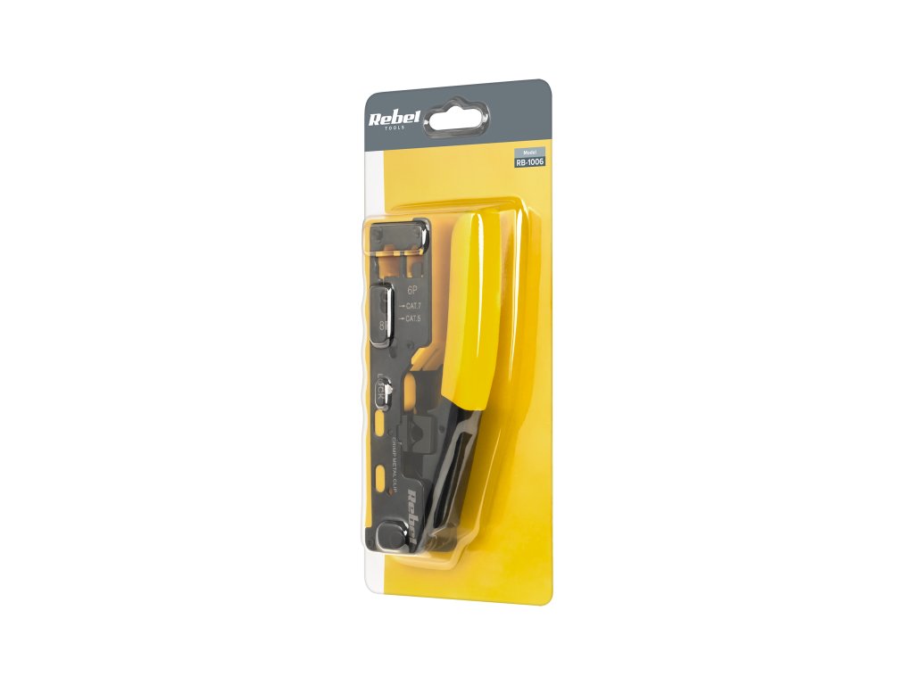 Krimpovací kleště ze série Rebel Tools jsou nástroj, který se hodí v dílně každého kutila. Snadnost použití a multifunkčnost zajišťují, že si je oblíbí jak amatéři, tak profesionální instalatéři. Zařízení slouží ke krimpování všech typů zakončení konektorů RJ-11 a RJ-12 6P a 8P.